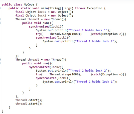 멀티플 락이 필요하면 synchronized block 안에 또 다른 synchronized block 을 포함하지 말 것