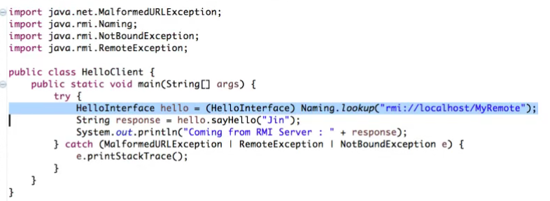 RMI Client lookups remote reference by lookup( ) from RMI Registry
