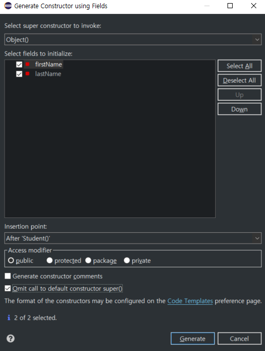 : 멤버 필드, 생성자, Getter/Setters를 만든다..