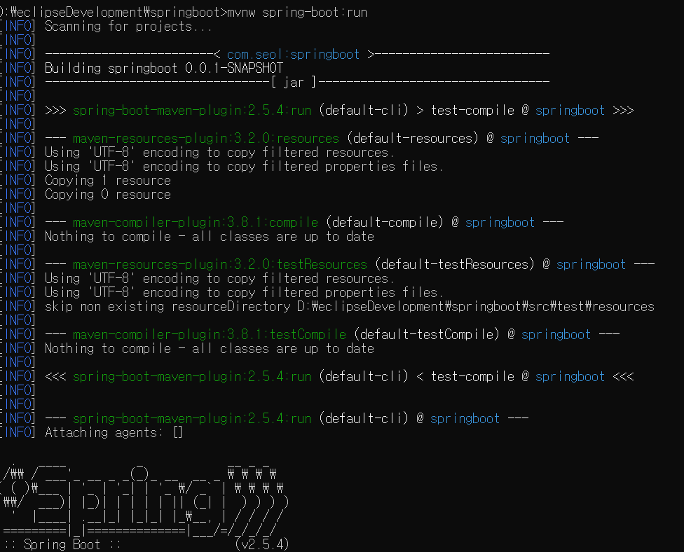 cd로 프로젝트 경로로 이동한 다음 mvnw spring-boot:run