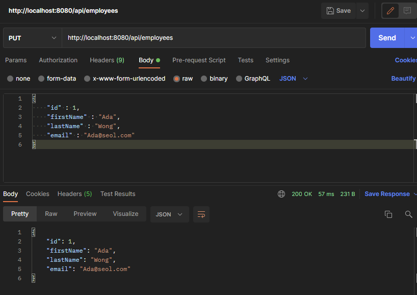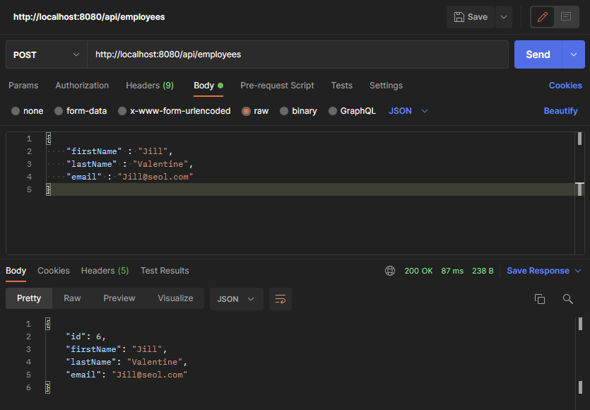 PostMapping이니까 JSON으로 보내야 하는 거 잊지 말 것
