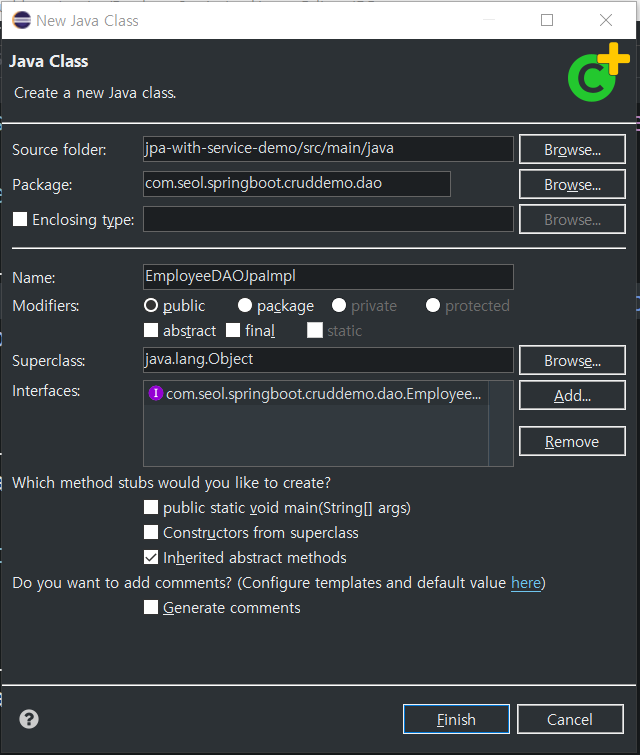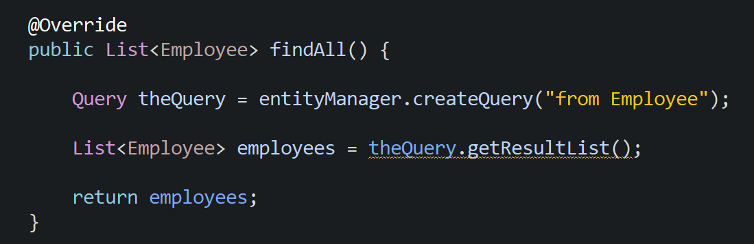 Service에 DAO를 지정해줬으니 DAO에서 기능만 써주면 된다.
