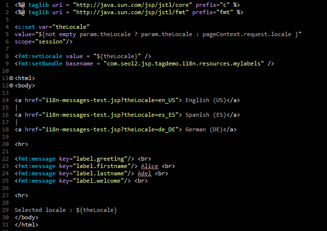 하이퍼링크 내용을 보면 i18n-messages-test.jsp 과 theLocale 이 있다.