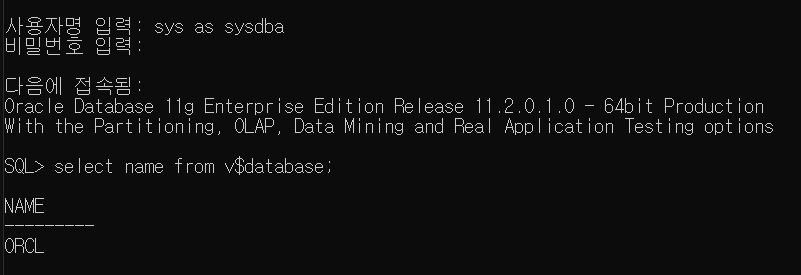 서비스 이름은 SqlPlus에서 sys as sysdba 로그인한 다음 select name from v$database; 을 입력해서 볼 수 있다.