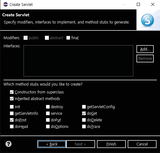 클래스 이름은 StudentServlet으로 설정
