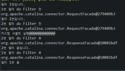 다음 부분이 모두 수행되면 응답 객체와 함께 다시 필터로 돌아온다.