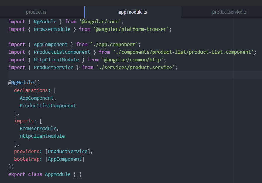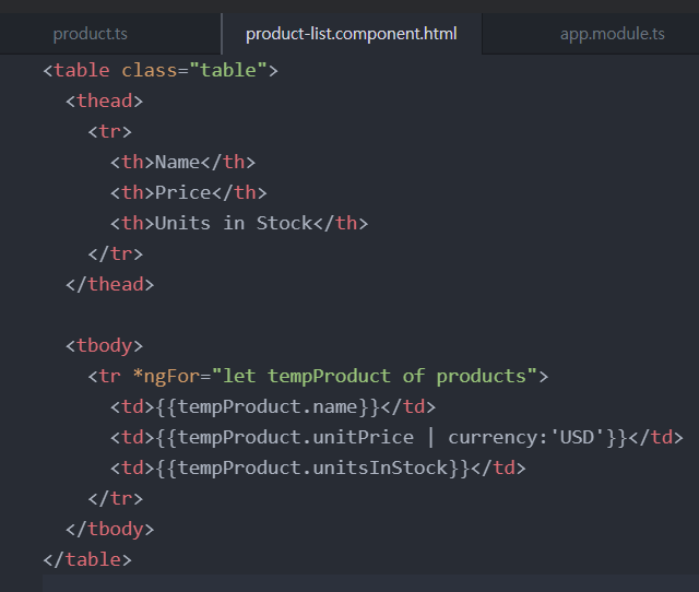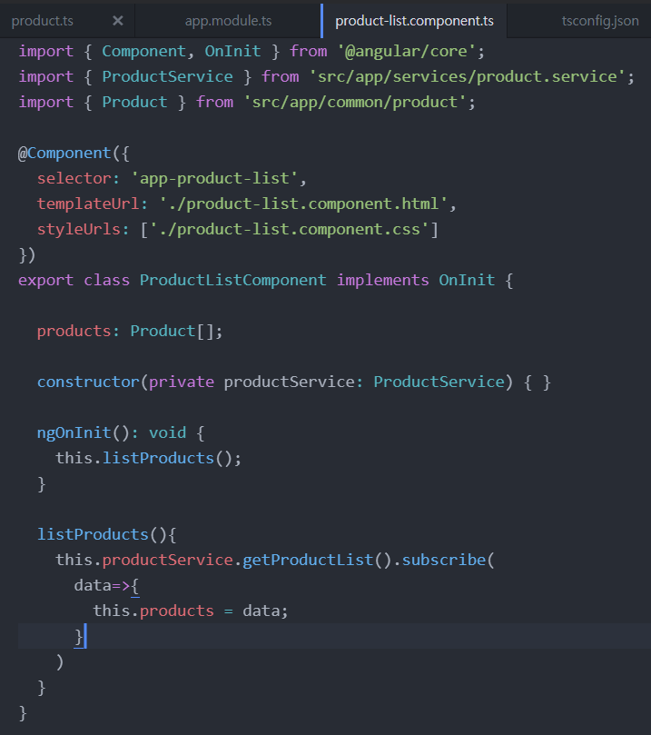 app.component.html에 product-list.component.ts에 있는 selector 인 <app-product-list>를 넣는다.