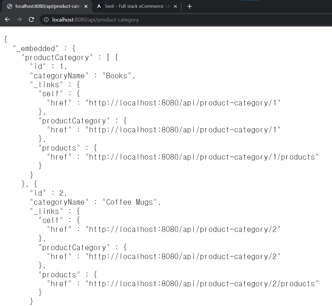 서비스는 REST API에서 ProductCategory 객체 배열을 반환