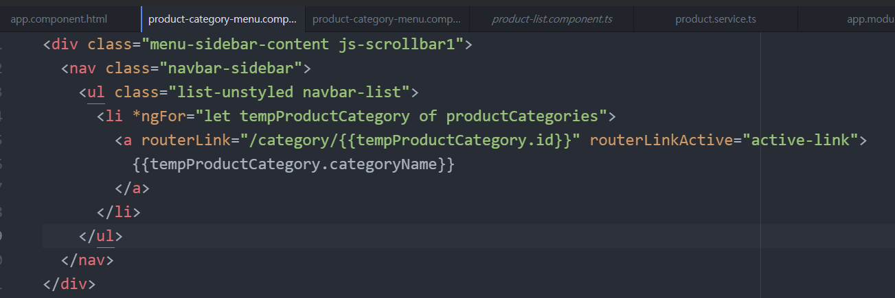 이 컴포넌트의 ts에서는 service를 통해 category 객체 리스트를 가져오고 html에서 이용한다.