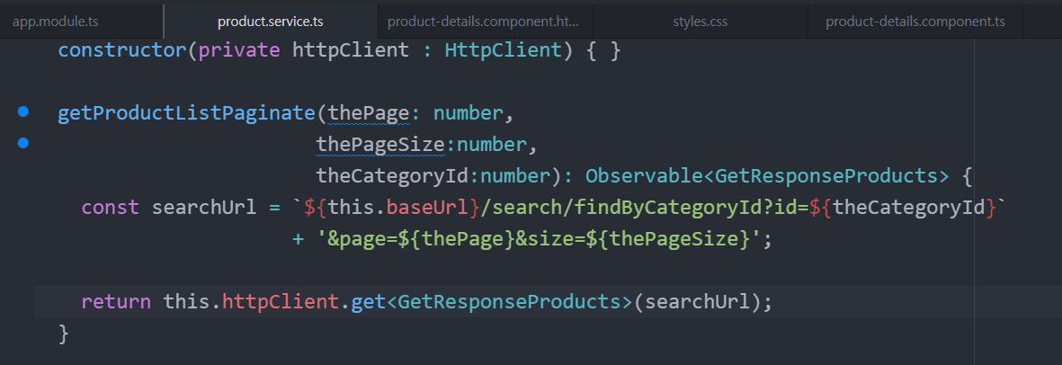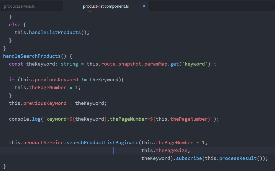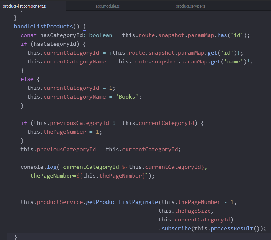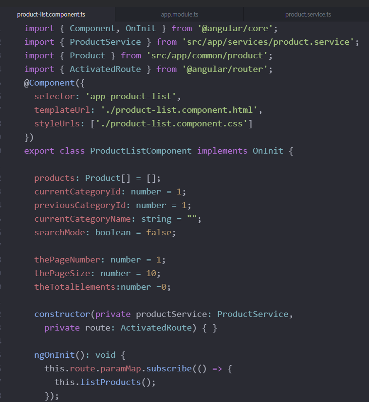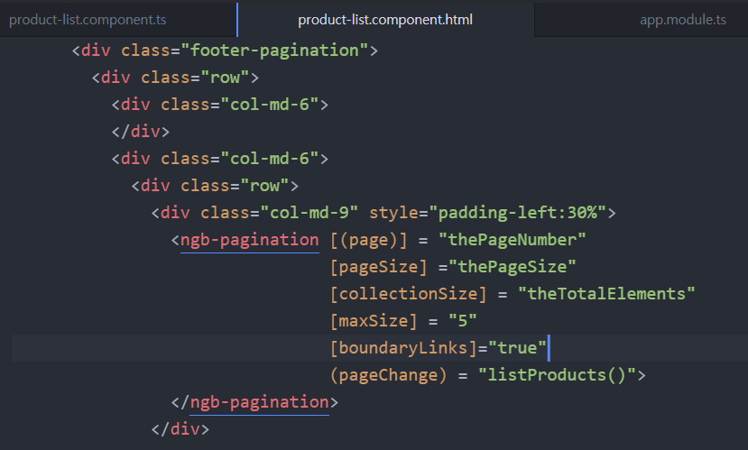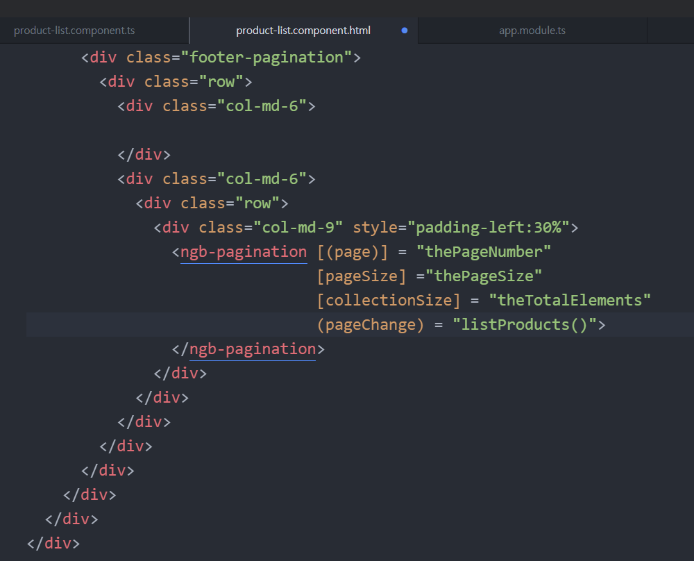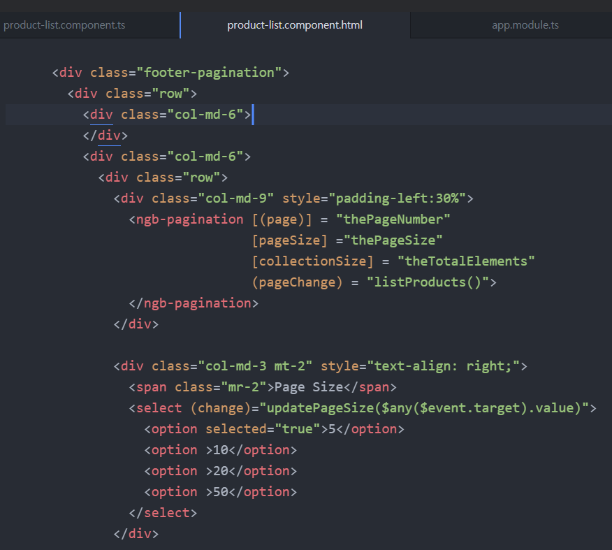 4. ProductListComponent에서 pagination을 다룰 수 있도록 수정한다.