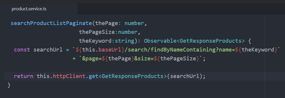thePage, thePageSize, theKeyword 를 매개변수로 받고 URL을 만들어서 Spring Data REST에 요청한다.