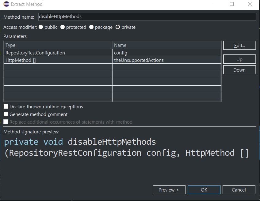 반복되는 부분을 method로 변환