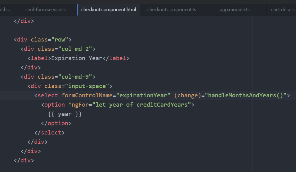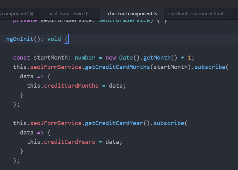 첨에 시작되면 ngOnInit 함수에 의해 서비스가 실행되어 년도와 월 배열 데이터를 component 변수가 받는다.