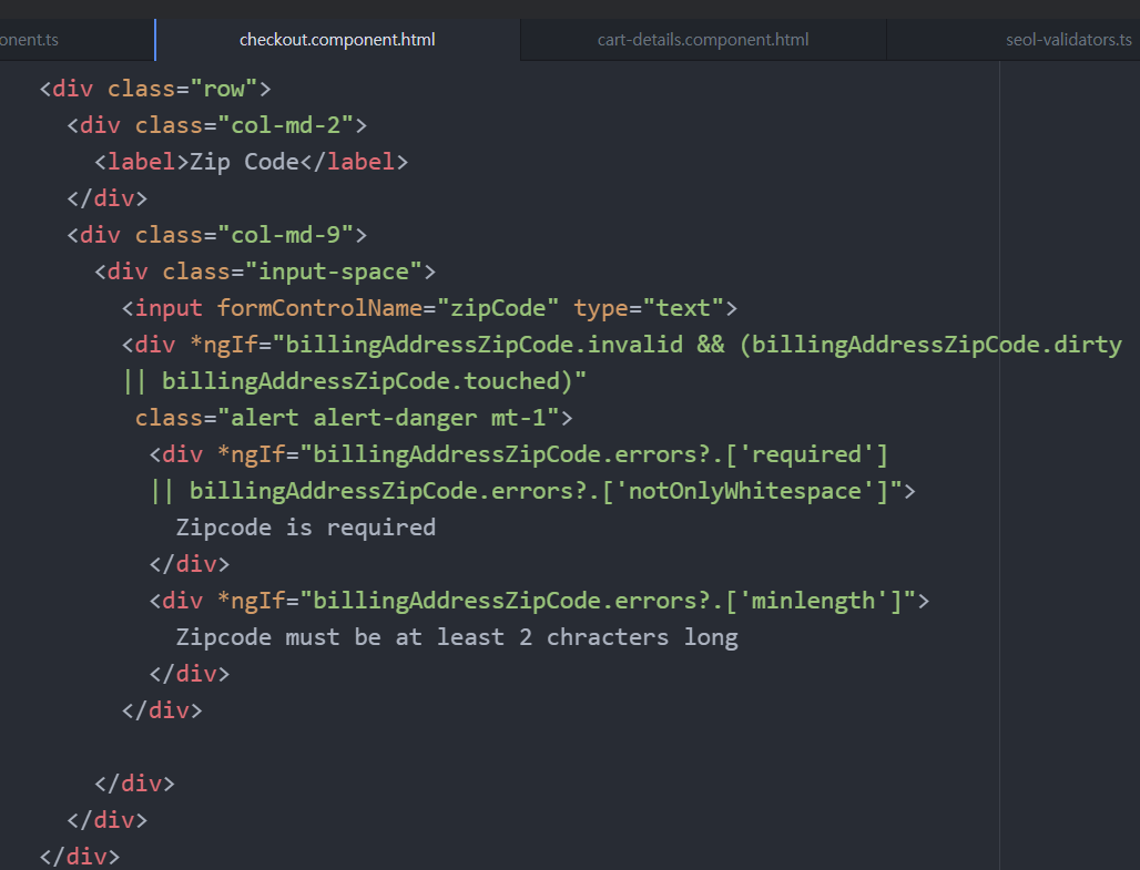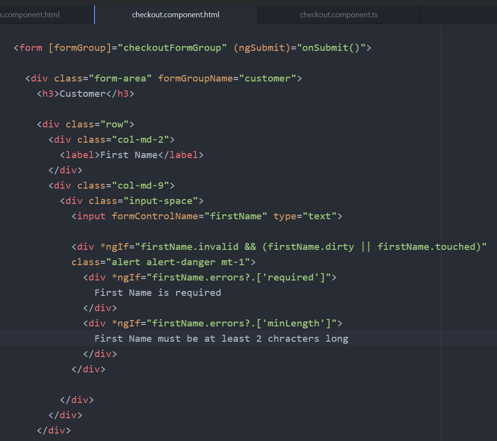 component.ts에서 formGroup의 control에 Validators.minLength(2) 이렇게 적혀있지만