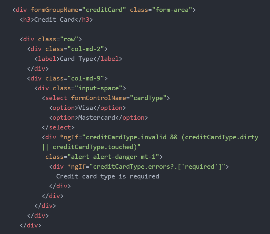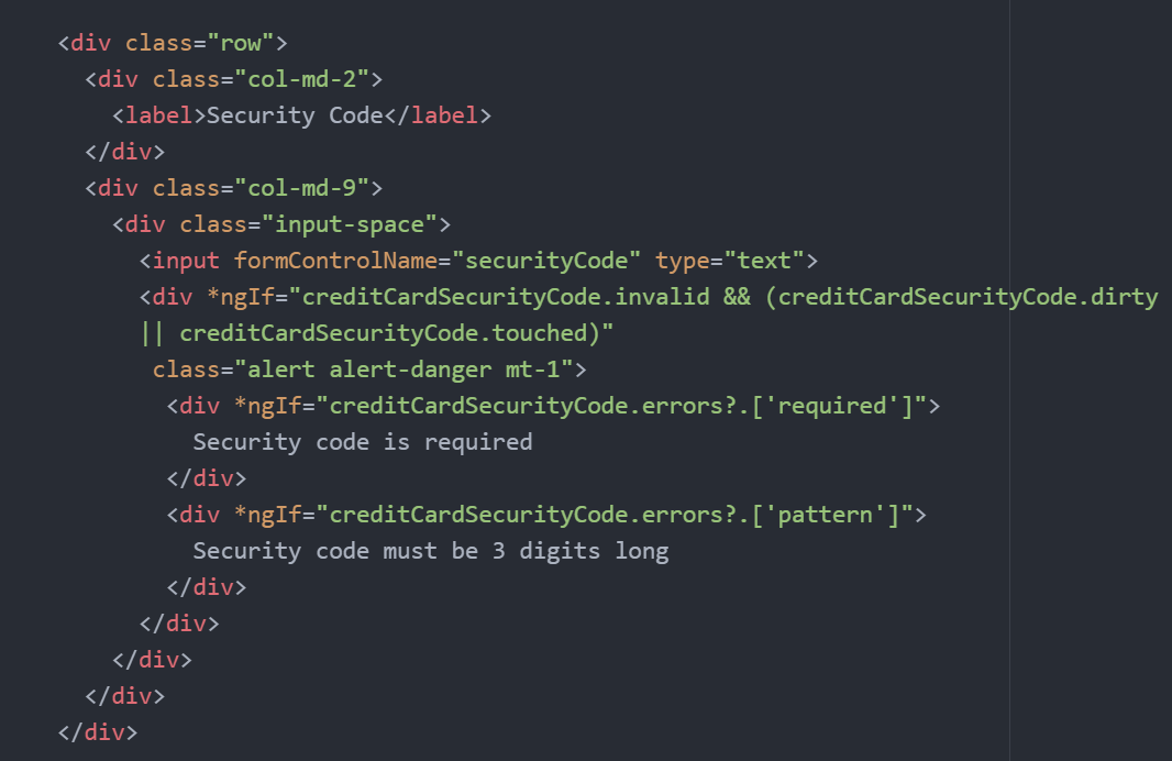 errors 오브젝트는 form control에 관해서 실패한 유효성 리스트를 갖고 있다.