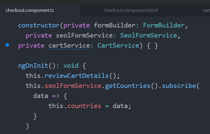 ngOnit에서 reviewCartDetails( )란 새로운 메서드를 부른다.