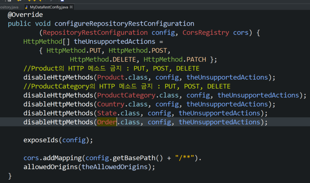 2. OrderRepository REST API를 읽기 전용으로 config 설정