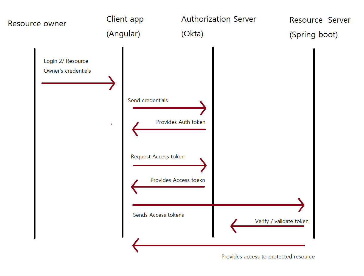 Access token은 Authorization Server인 Okta에 의해 검증된다.