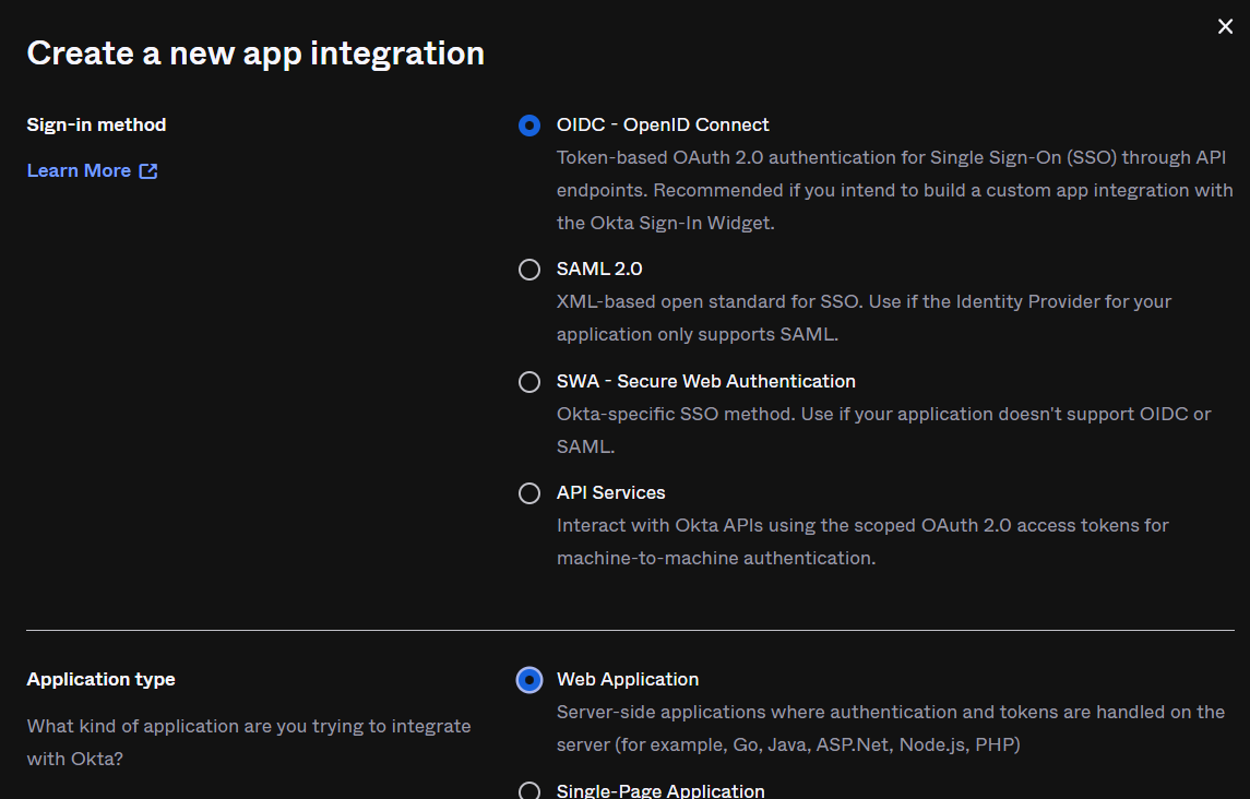 Application에서 생성할 때 OIDC와 Web Application인 걸 선택하면 된다.