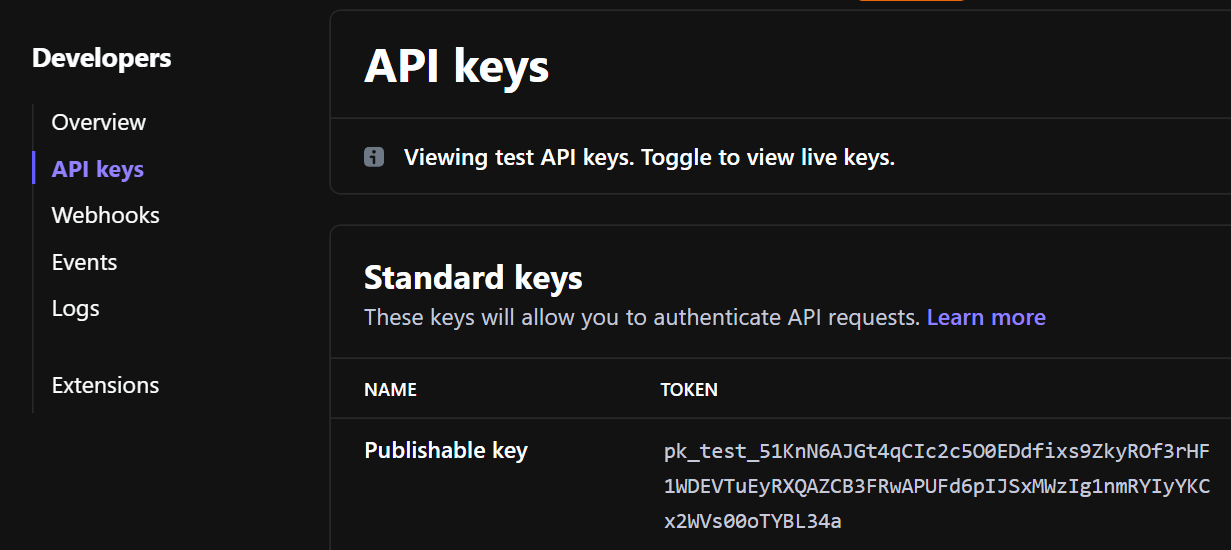 Publishable key는 Stripe에 계정을 확인하는 키이다.