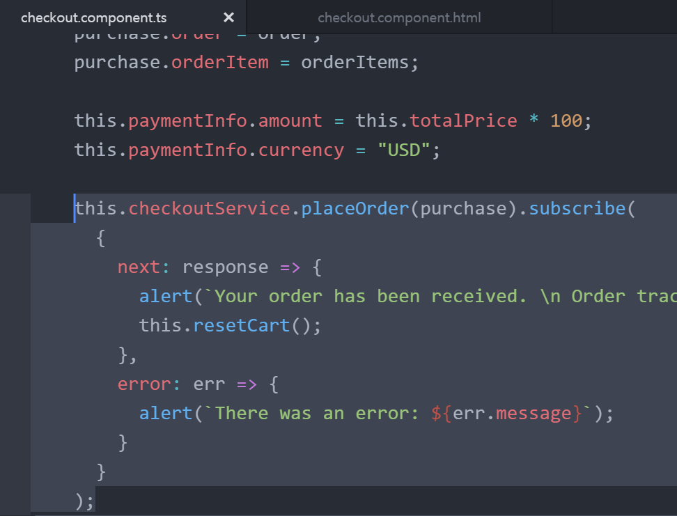 this.checkoutService.createPaymentIntent(this.paymentInfo).subscribe(
