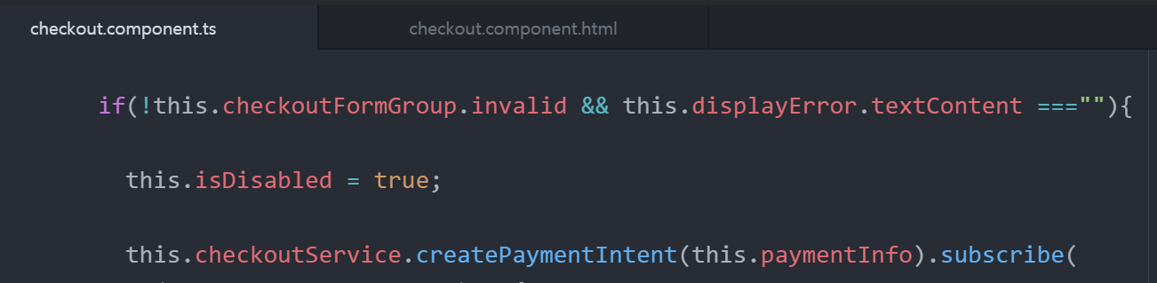 if(!this.checkoutFormGroup.invalid && this.displayError.textContent ===""){