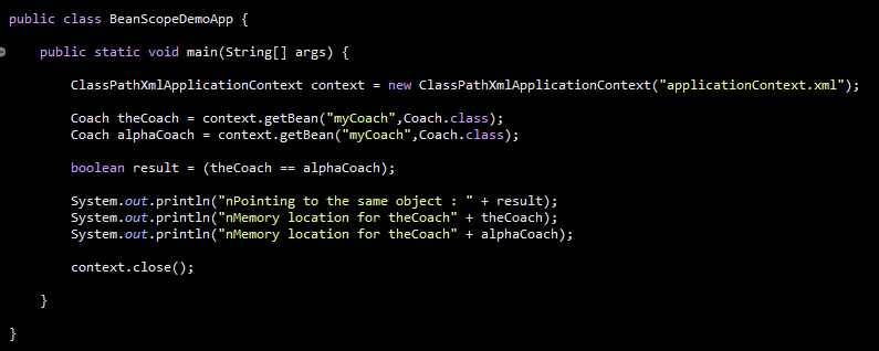 빈으로부터 두 개의 변수에 같은 클래스를 배정하고 theCoach와 alphaCoach