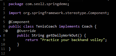 위 예시에서는 클래스 위에 @Component("thatSillycoach")라고 했다.