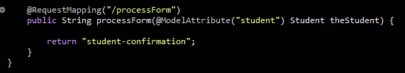 submit 버튼을 누르면 스프링은 student.setFirstName( ) / student.setLastName( )을 부른다.