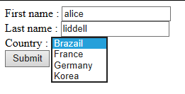 submit을 누르면 student.setCountry( ) 실행되어 선택된 값을 student의 country 필드에 넘긴다.
