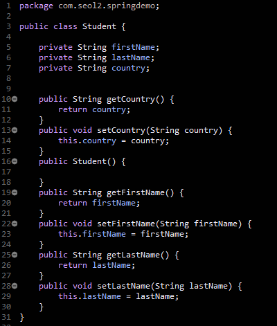 jsp 에서 student.country 를 하면 student.getCountry( ) 를 실행하여 값을 표현한다.