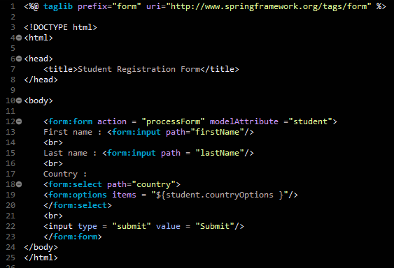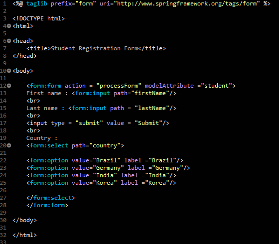 form:option 값이 선택되면 student.country 필드 값에 저장하는 기능이다.