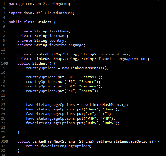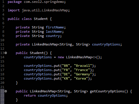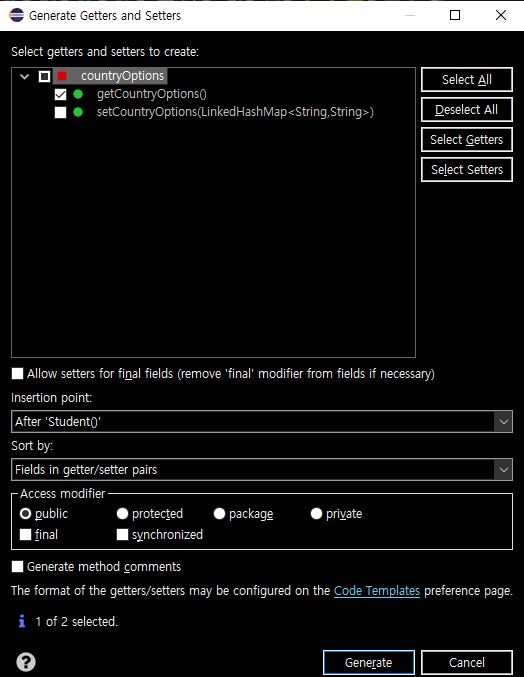 jsp 파일에서 student.countryOptions를 하면 student.getCountryOptions( )를 실행한다.