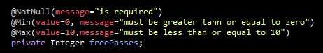 freePasses가 int이면 @NotNull이 작동안한다 Integer라고 해야 한다.