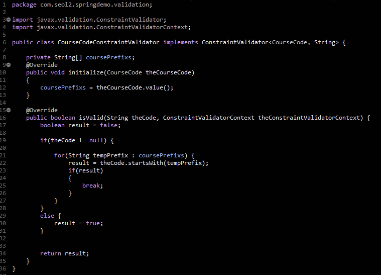 CourseCodeConstraintValidator은 유효검사를 하는 클래스이다.