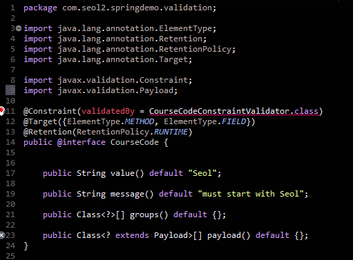 CourseCodeConstraintValidator 에 빨간불이 들어왔으니 만들어주자.