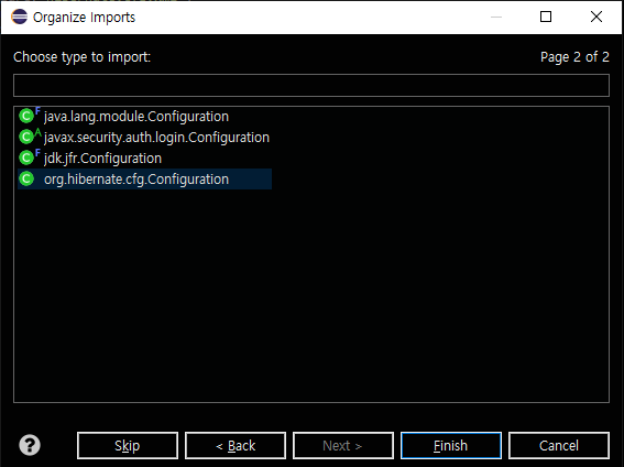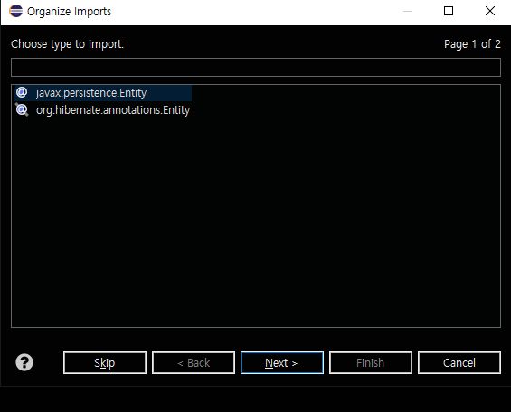 organize import을 할 때 javax.persistence.Entity를 선택하자.