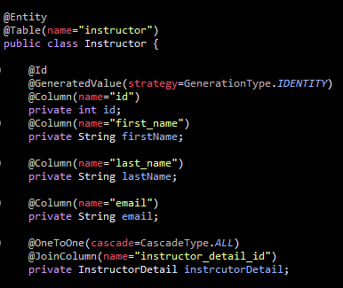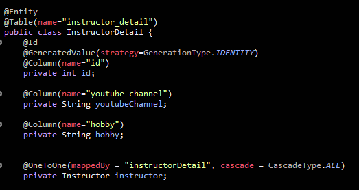 Instructor 클래스에서 InstructorDetail 클래스 필드이다.