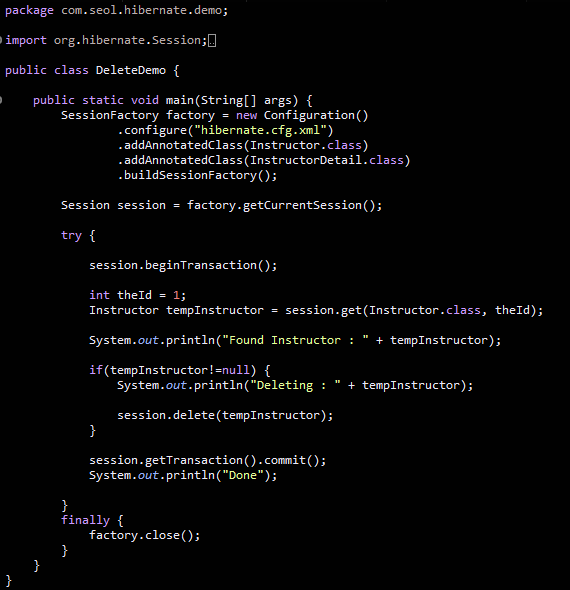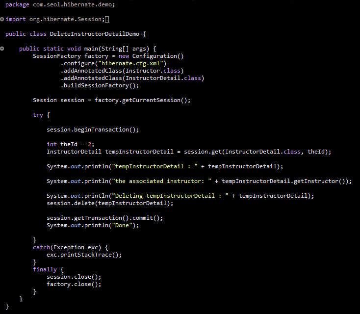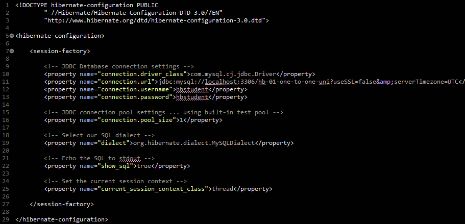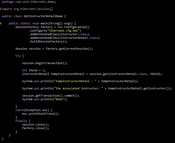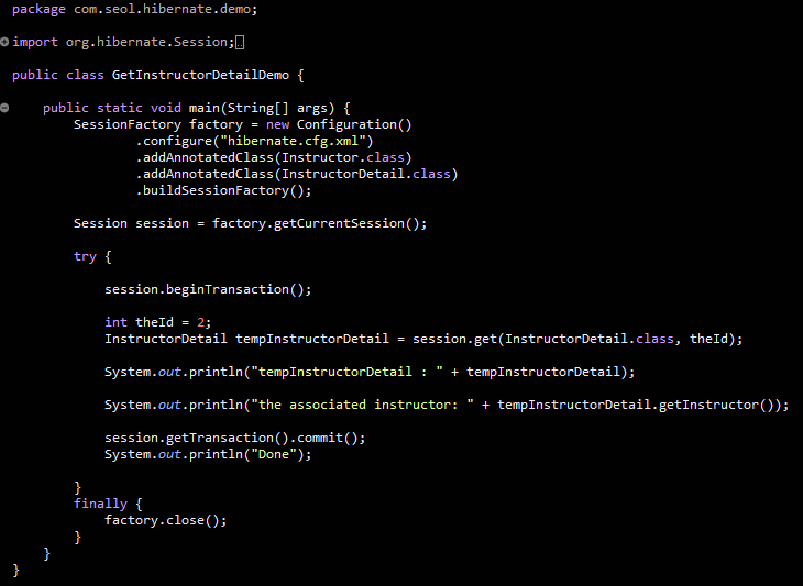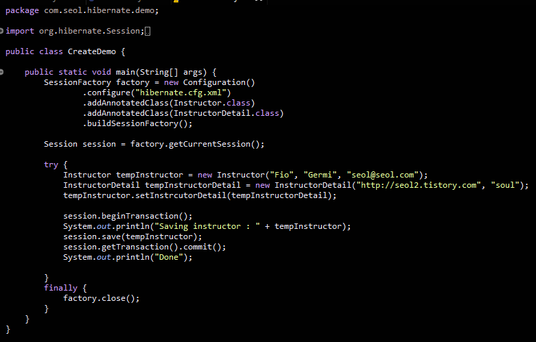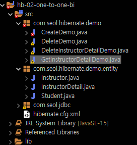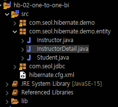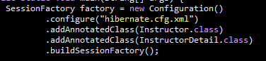 SessionFactory를 구성해줘야한다. Instructor와 InstructorDetail 의 AnnotatedClass를 추가한다.