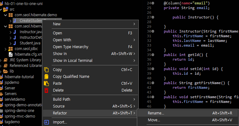 Instructor 클래스도 만들어주고 똑같은 방법으로 organize import를 한다.