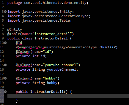 1. 클래스를 엔티티로 지명하고 데이터베이스 테이블에 연결한다.