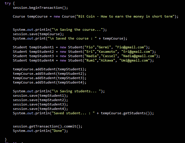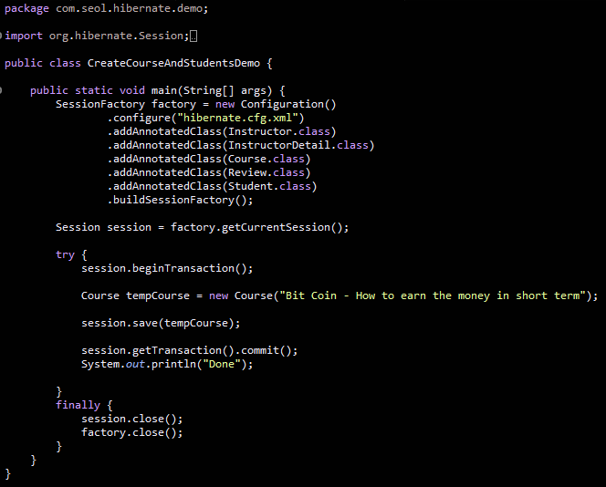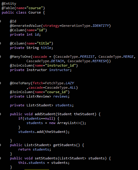 그 다음 여기서 주의할 것은 course를 저장하는게 아니라 Student를 저장한다.