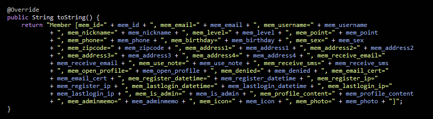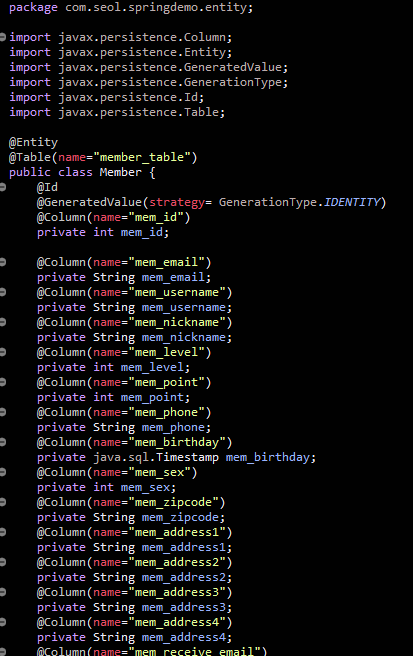 필드를 입력해주자... 일일히 sql 데이터 타입과 java의 데이터 타입에 맞춰서 써야한다..