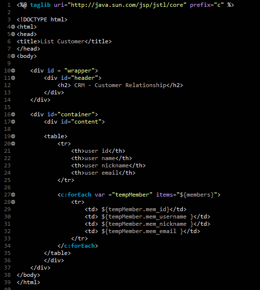 jstl을 상단에 입력한다. css는 아직 입히지 않아서 없다.