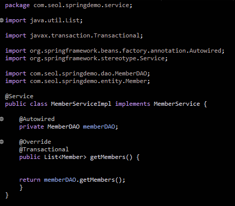 memberDAOImpl 에서 원래 있던 @Transactional을 제거한다. 왜냐하면 Service layer 일부이기 때문이다.