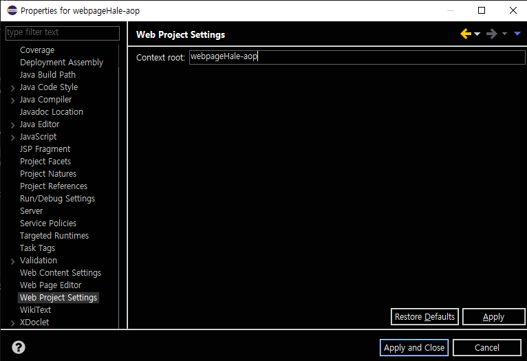 브라우저에서 어플을 실행할 때 url 에서 볼 실제 컨텍스트 이름 설정