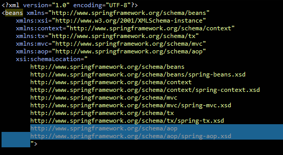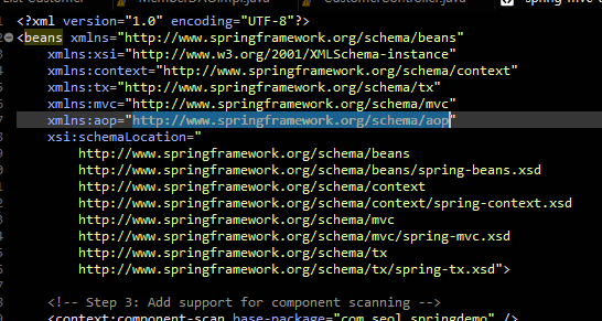 xml 파일에서 aop 링크도 추가한다.