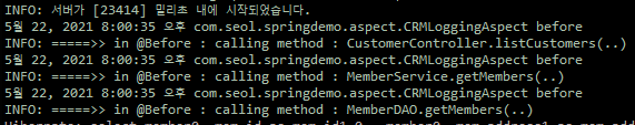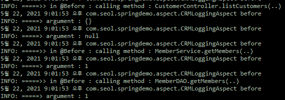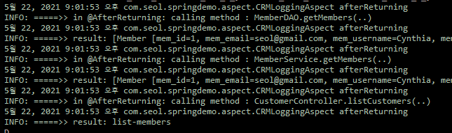 실행되는 메소드와 반환되는 값도 역시 같이 로그로 남길 수 있다.