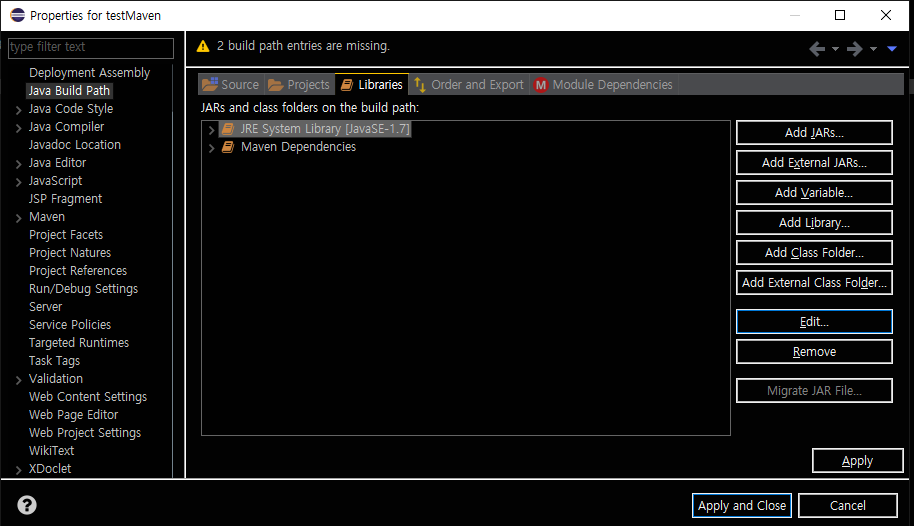 위 사진처럼 Java build path를 들어가 보면.
