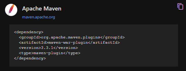 maven-war-plugin으로 검색하여 위 내용을 복사하여 pom.xml에서 plugin 부분으로 가져가자.